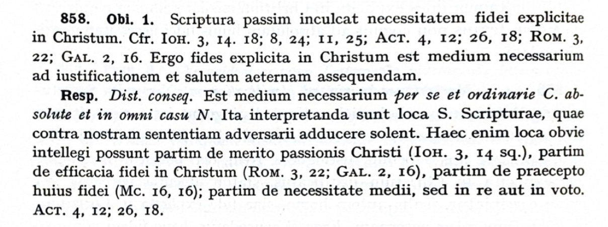 One of the most difficult objections to the common thesis of an “implicit faith” in the Incarnation and Trinity which suffices per accidens for justification after the coming of Christ is the clear testimony of Sacred Scripture. In text after text, the opposite doctrine seems to be indicated.